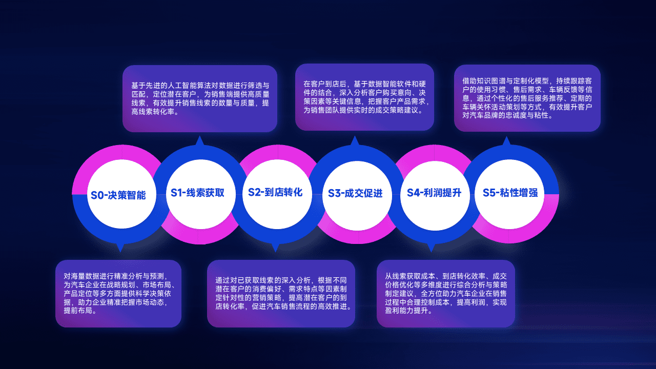 通过拓宽潜在客户来源、、、优化线索分配并提高到店转化率,,,,以增强销售效率。。。同时,,,利用线索数据不断优化分析模型,,,有效提升转化率,,扩大营销影响力。。。
